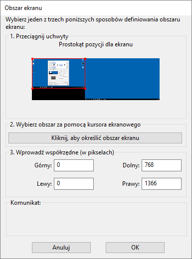 - W sekcji Obszar ekranu wybierz część monitora, którą ma odwzorowywać urządzenie: