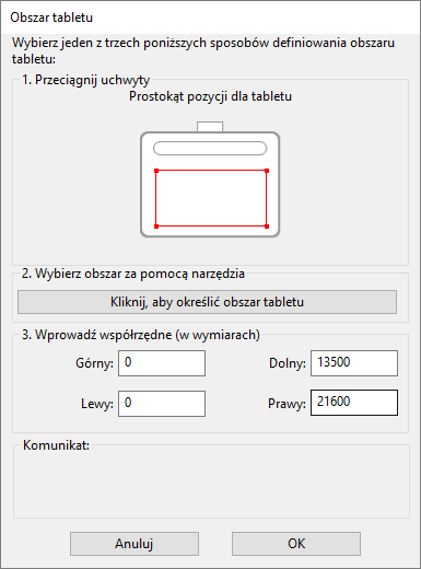 - W sekcji Obszar tabletu wybierz część urządzenia, którą chcesz przypisać do wybranego Obszar ekranu.