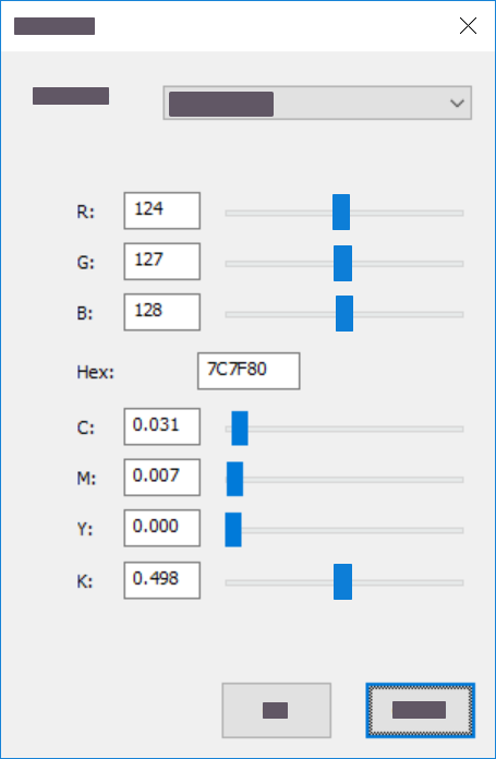 - Attribute: Sets the sliders for RGB or CMYK color for the following attributes: