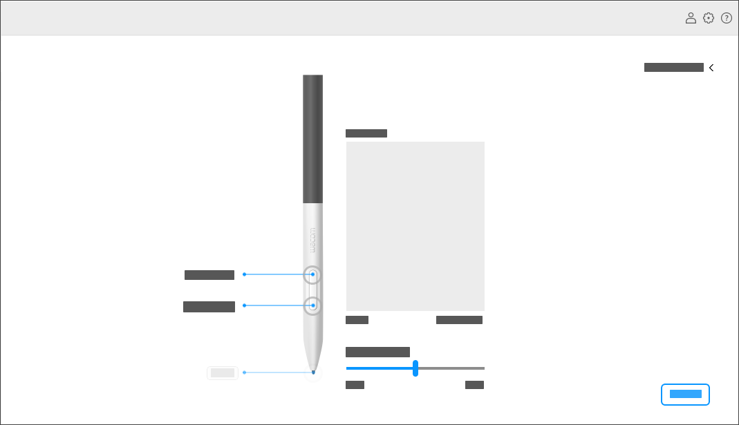 - 筆圧レベルを確認するにはテストエリアをペン先で押し、現在の筆圧を確認します。