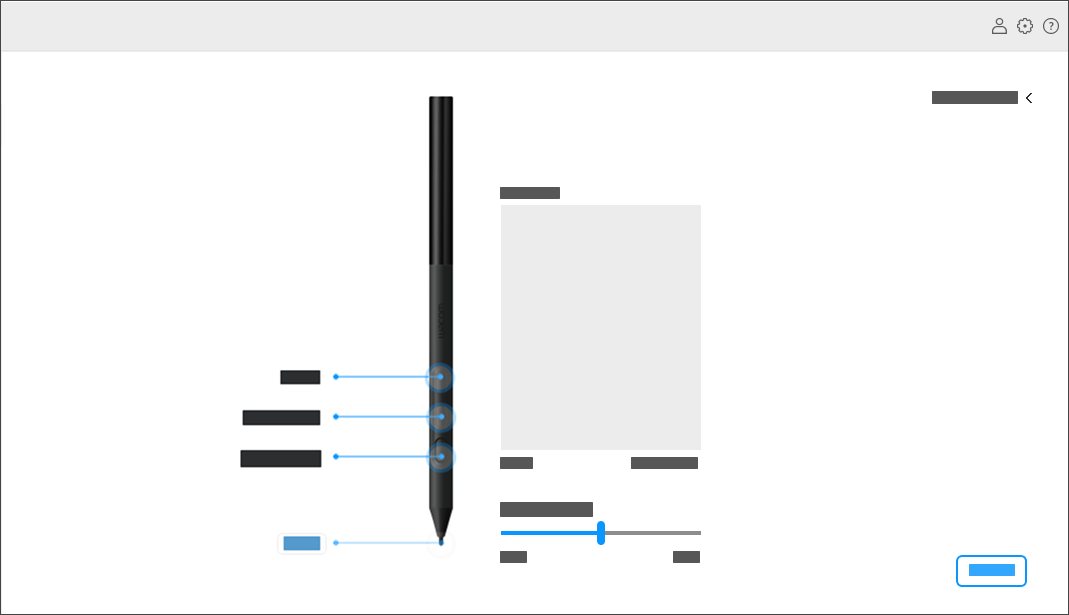 - Aby sprawdzić, z jaką siłą musisz naciskać piórem, sprawdź aktualny nacisk, naciskając końcówką pióra lub gumką w Obszarze testowym.