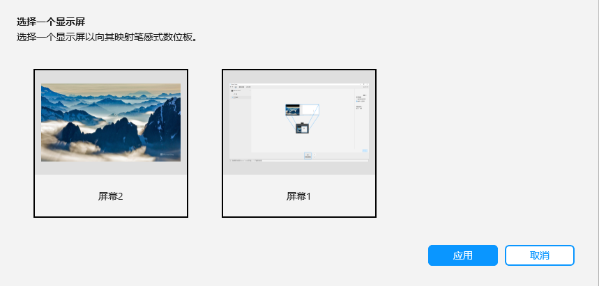 5. 选择一个显示屏对话框中,选择您想要与之映射的显示屏幕,然后点击应用
