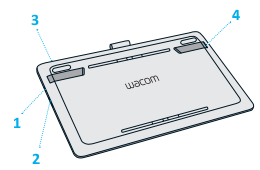 - タッチキー:Cintiq Proをオンにすると点灯する5つのタッチボタン。タップして機能を実行できます。