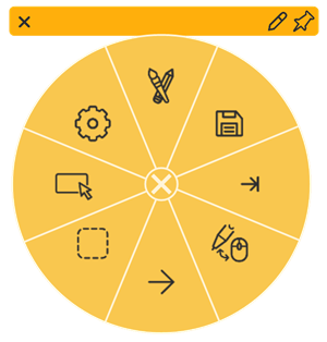 グリッドパネル、ラジアルメニュー、ペンジェスチャのサンプルレイアウトは以下の図をご覧ください。